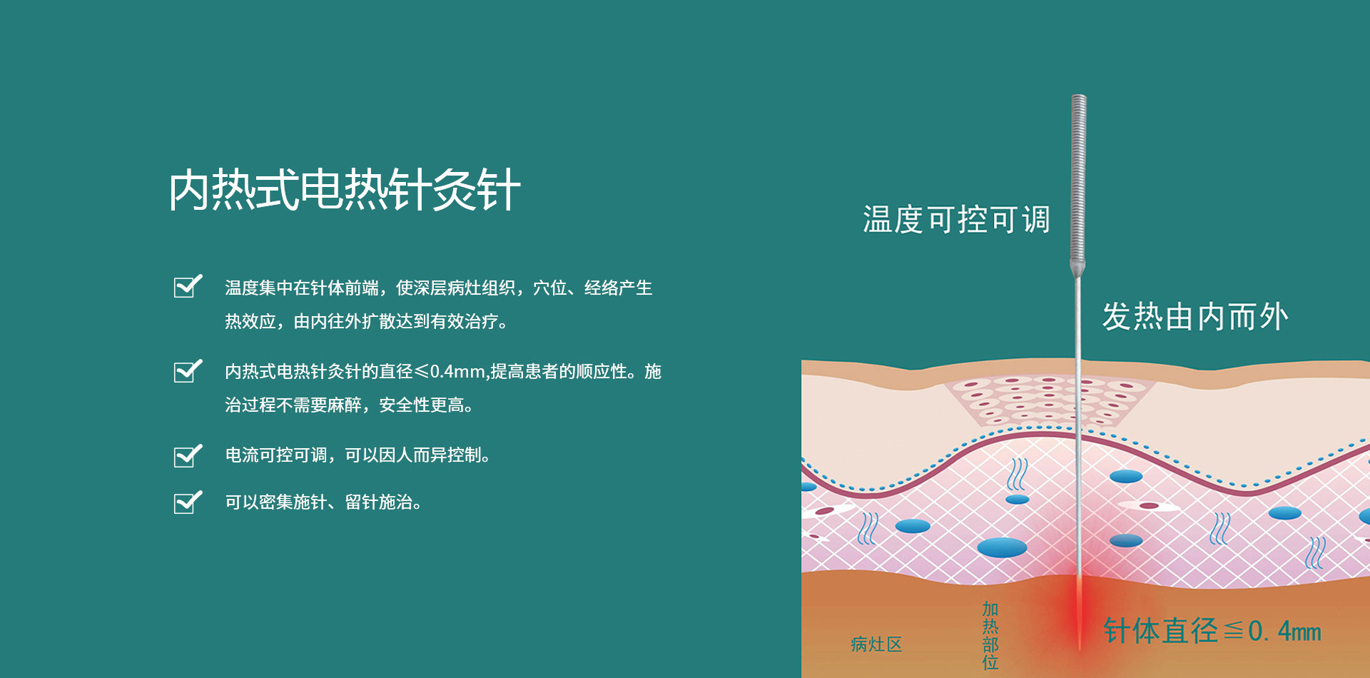 • 內(nèi)熱式電熱針灸針